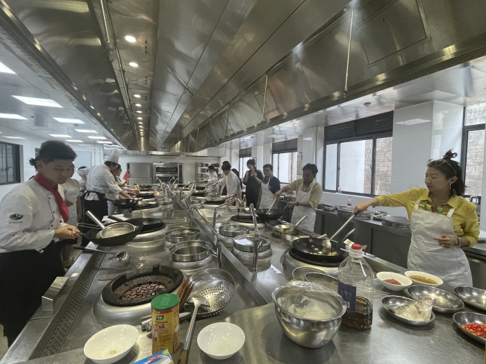 校园文化课程同样丰富多彩。在徽菜制作课程上,泰国师生亲手烹饪臭鳜鱼,品尝劳动成果时,真切领悟“食在徽州”的魅力;在毛笔书法课程里,他们写下对中国文化的热爱;在餐桌布置课程中,尽显中式礼仪的精致优雅。