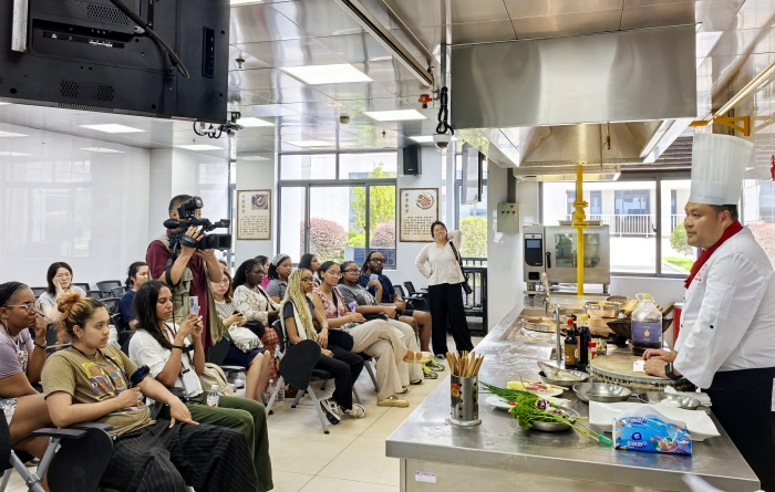 7月23日下午,美国马里兰州巴尔的摩高中生研学团一行11人,在省外办、市外办相关人员陪同下,来我校开展交流研学活动。我校国际交流与合作处工作人员、烹饪专业学生代表、部分来华留学生参加此次活动。