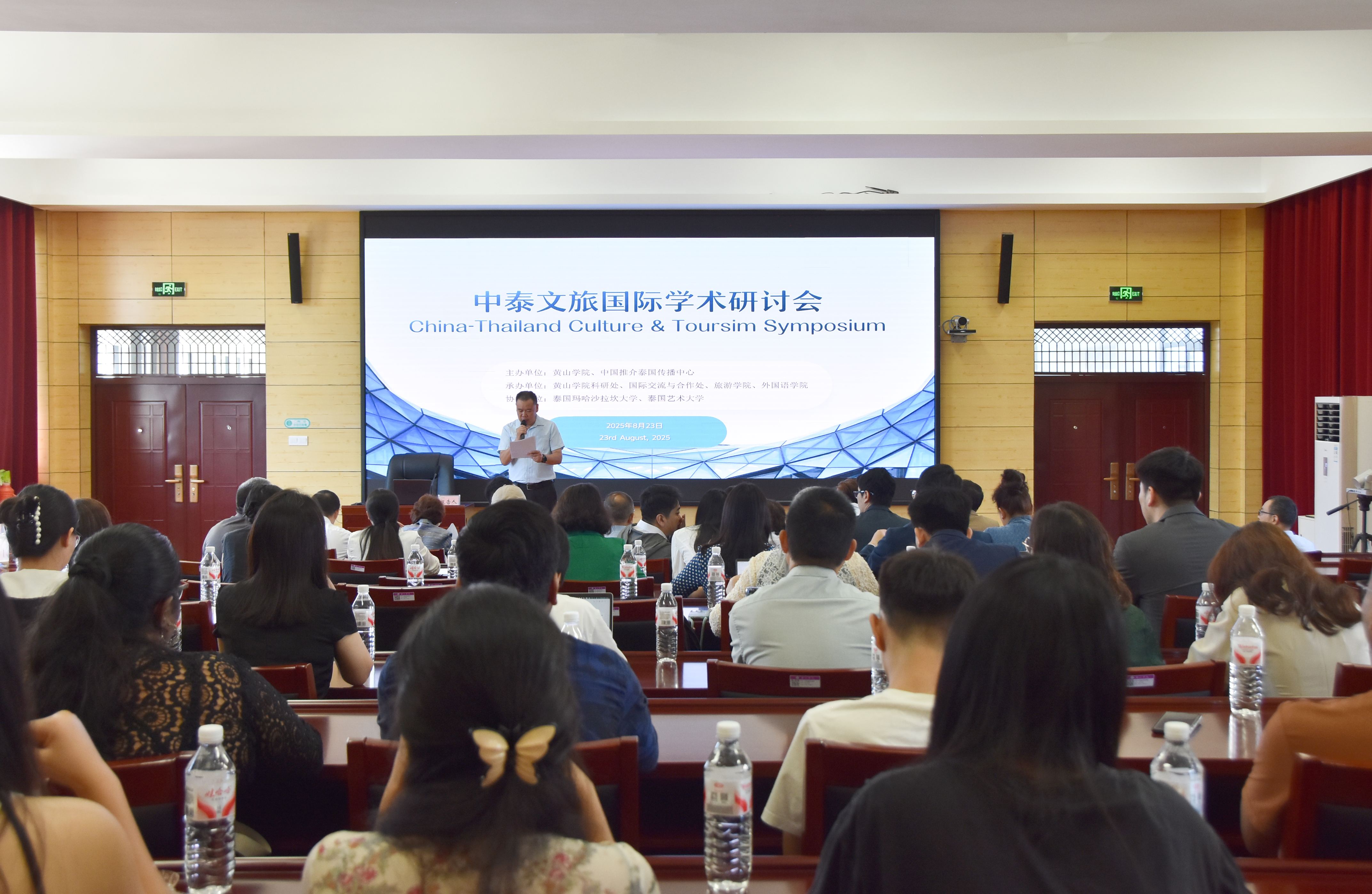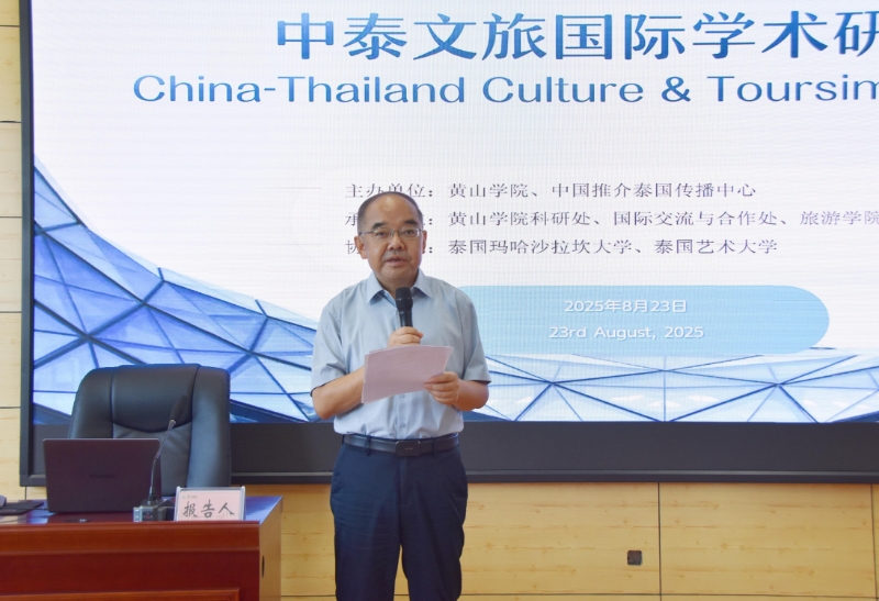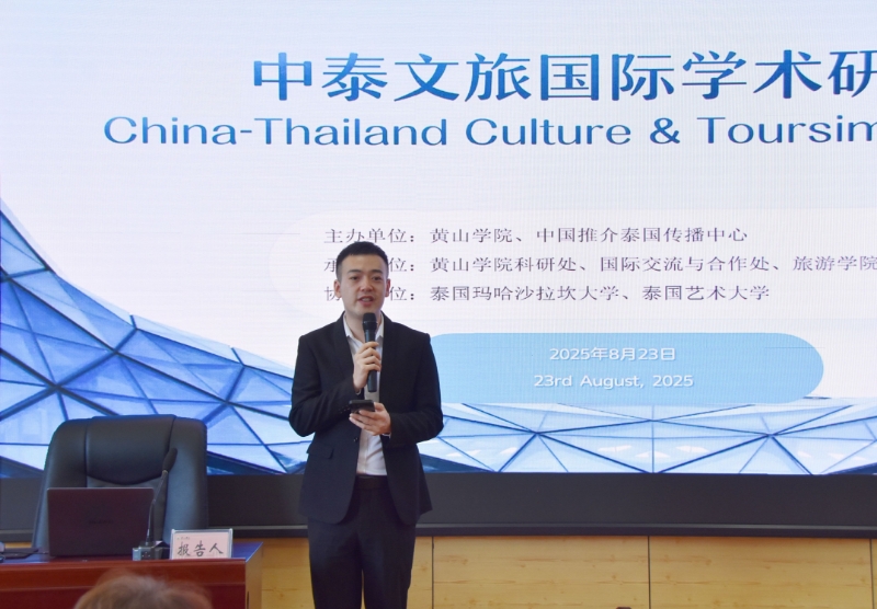 8月23日,以“徽风泰韵——中泰文旅交流与合作新视野”为主题的中泰文旅国际学术研讨会在我校举行。会议由我校与中国推介泰国传播中心主办,泰国玛哈沙拉坎大学、泰国艺术大学协办。两国高校及文旅机构的近百名专家学者和行业代表应邀参会,共同探讨文旅融合发展的创新路径。校党委委员、副校长张小明出席研讨会并致辞。旅游学院、外国语学院部分教师参与研讨。