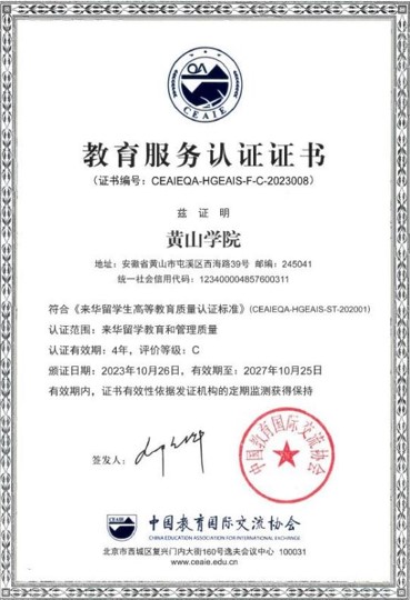 学校坚持“提质增效、扩大规模、规范管理、打造特色”的来华留学教育理念,着力打造“徽州文化+黄山旅游+技能大赛”三位一体的“留学黄山”特色品牌。