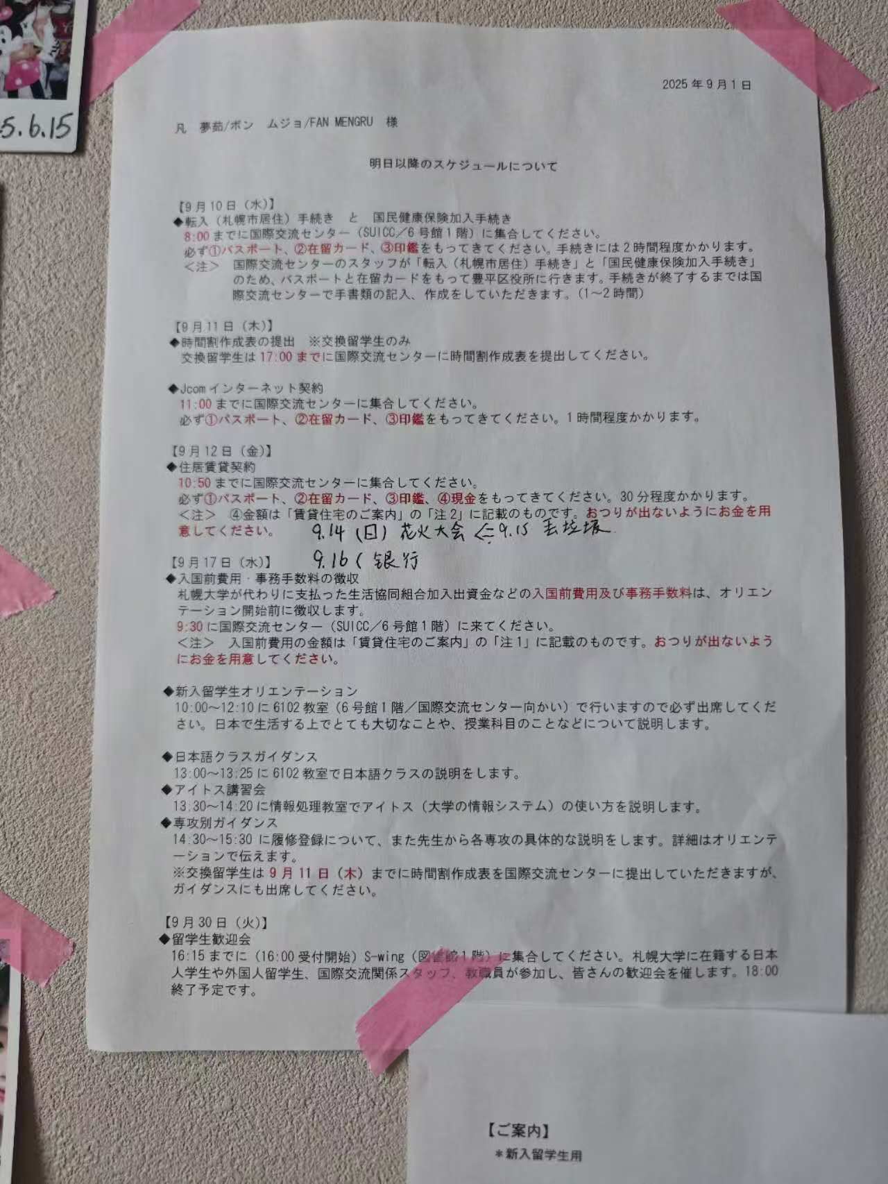我想有这些家人朋友的陪伴惦念,有札幌大学老师同学们的帮助交流,这一年应当也不会太孤单。下一步就希望自己能再勇敢一点多和日本人交流。期待9月30日的留学生欢迎会。