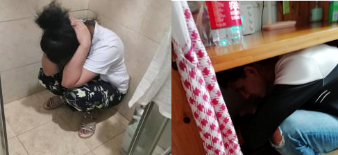 随着避险警报信号响起,留学生采取紧急避险措施:同学们就近蹲在课桌、床铺的旁边或承重墙的墙根、墙角;用手或其它柔软物品等保护好头部,尽量蜷曲身体,降低身体重心,缩小面积,不靠近窗口,避开灯扇,避免被砸。