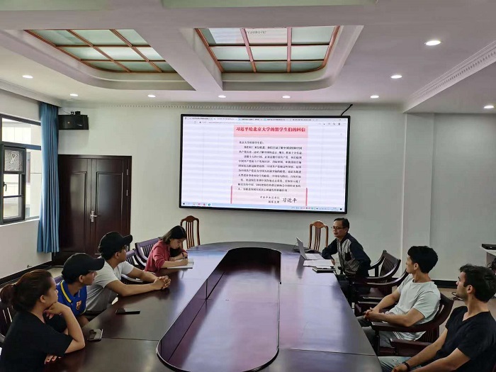 会上,殷猛领学了习近平总书记给北京大学的留学生们的回信全文。