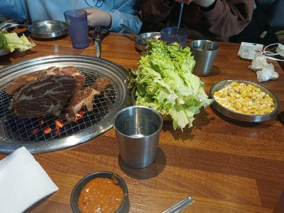 当然在学习之余也会有适当的放松,我们找到了一个非常有韩国特色的烤肉店。与中国烤肉不同的是,这里的烤肉是整块腌制需要自己切割的,还是挺有趣的。并且口味也很好!最后,希望6月可以考一个很好的成绩!