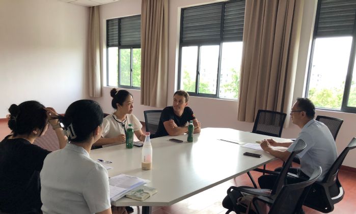 6月29日下午,太阳集团tyc539MACAU召开外籍教师座谈会,太阳集团tyc539MACAU副院长殷猛、相关工作人员以及美国籍教师ADRIEN PAUL DUISBURG BRILL参加了会议。