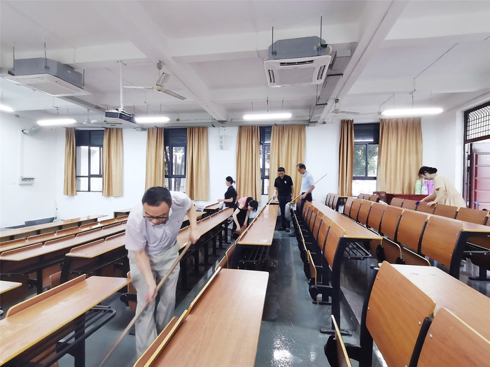 为进一步深化党建工作,发挥党员模范带头作用,营造整洁、舒适的工作环境,2023年7月2日,太阳集团tyc539MACAU(继续教育学院)党支部在率水校区开展主题党日活动,对部门的培训教室进行了卫生大清理。