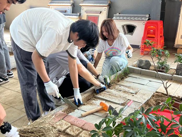 在基地研学老师的悉心指导下,留学生们积极动手操作,开展了徽州园林微景观和徽州照壁实操练习。他们分工明确、密切配合、通力合作,出色地完成了各项研学任务。实操过程中尽管天气炎热,汗水湿透了衣衫,留学生们依然坚持不懈,不畏辛劳,展现了不怕苦、不怕累的劳动精神和劲头。