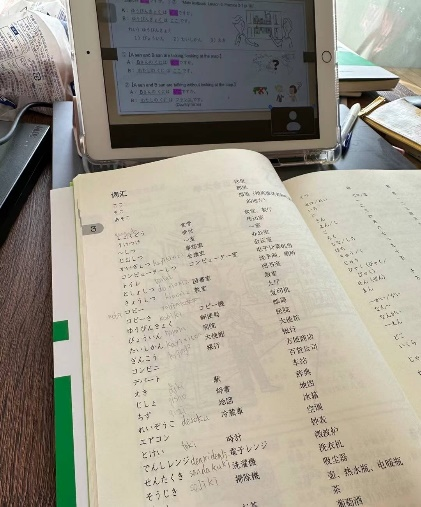 来到这里的第二个月,上课变成常态化。学日语的时候刚开始遇到了很多困难,有时候上课会觉得无所适从。老师每教一句就会让所有的同学轮流读一遍,这个环节往往是最让我感到头疼的。所幸上了一个多月的课,我也摸索出了一些方法。