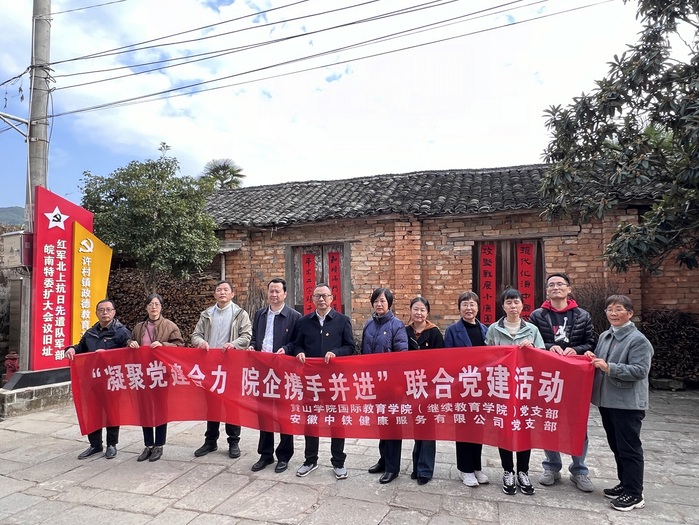 11月29日,我院党支部与安徽中铁健康服务有限公司党支部共同开展了一场别开生面的“凝聚党建合力,院企携手并进”联合党建活动。双方一起前往歙县许村镇红军北上抗日先遣队军部皖南特委扩大会议旧址,开展红色实践教育,重温了革命历史,感受了红色文化。