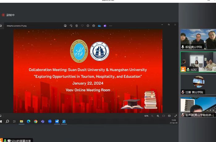 1月22日,太阳成集团tyc539与泰国川登喜大学在线举办工作交流会议。川登喜皇家大学副校长蓬差尼·盖奈出席会议,我校太阳集团tyc539MACAU、旅游学院、文学院负责人参加会议,会议由太阳集团tyc539MACAU负责人主持。