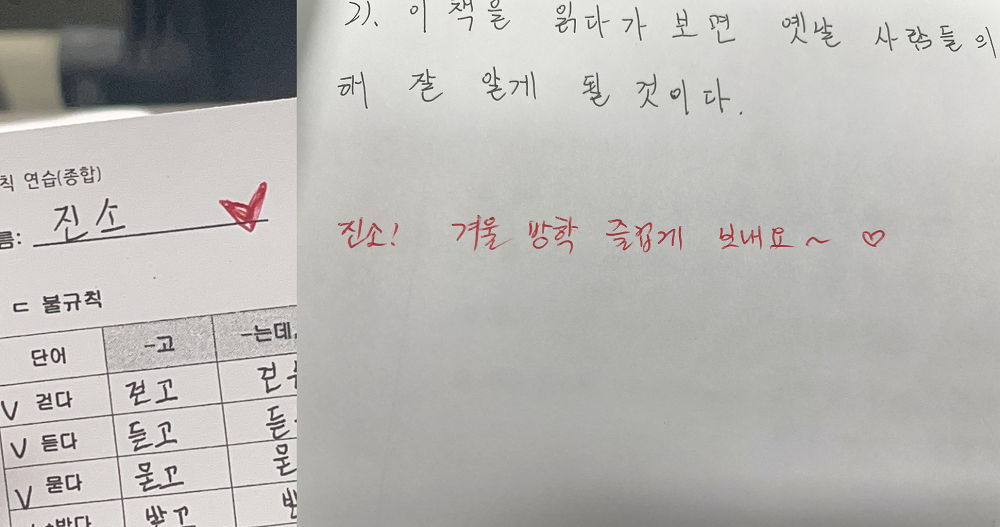 “네”(是)是我刚到韩国说的最多的话,还记得咖啡店老板问我“要冰的还是要热的?”我说:“네”,刚来的时候口语几乎不会,经常因为害怕听不懂不敢和外国人社交,但是这里的每一位老师,都很积极的帮助我们,还记得阅读老师每一次的作业都会有很长的评语,有问题会写的很详细,尽量用我们能看懂的单词,一次次的“잘했어”(做得好)让我越来越有自信用韩语来表达自己。阅读老师非常喜欢中国,曾经到哈尔滨留学过一段时间,上课的时候经常给我们讲述她在中国留学的故事,在我们最后一节课和老师拍合照的时候,她拥抱着我们哭了,或许老师也非常不舍吧,但是时间还在继续往前走,老师在未来还会认识一波又一波前来求学的同学们,不知道多年后她还会不会记得曾经的一起笑,相拥而泣的我们。不仅仅是阅读老师,口语老师每节课都会给大家口语交流的机会,让大家自己用韩语表达,也是在口语课上,我进行了第一次韩语发表,虽然准备的过程很艰辛,但是发表完台下响起掌声的时候,真的非常有成就感。舞蹈课最后一节课的时候问老师:“以后还可以跟您学习舞蹈吗?”她说:“完全可以。”还会再见的吧,我们相遇于夏天,而夏天从未结束。