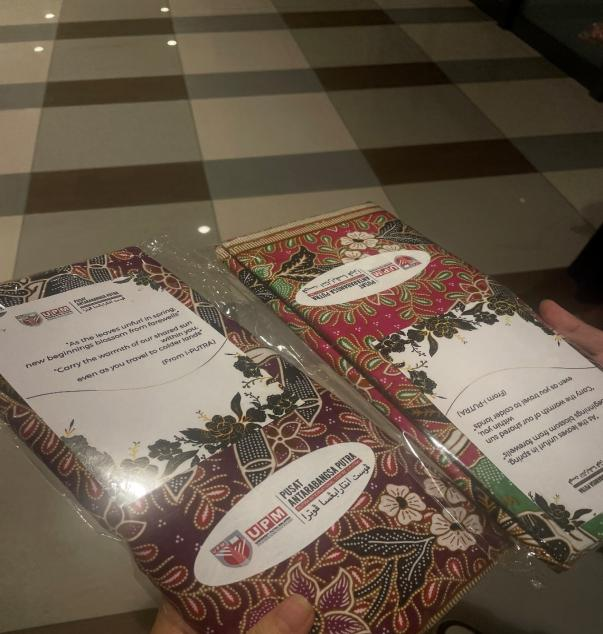 2024年1月19日,博特拉大学为我们举报了结业典礼,每个参加活动的同学都能收到一份来自马来西亚的礼物—马来西亚传统布裙。我知道回家的钟声即将被敲响!典礼进行中,在场的每个同学都会被叫到台上领取结业证书,仪式感很足。活动结束后,国际处的工作人员还带领大家一块跳舞,虽然看不懂跳的是什么舞蹈,但是氛围感很好!