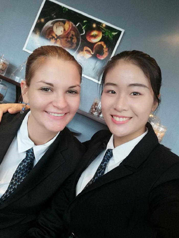 也不知是不是巧合,后来我就被分去了一家非常靠近瑞士的酒店实习,去瑞士玩也是很方便了。实习的酒店的经营活动有包括casino,在当地算是最有名的了,所以很多附近的瑞士人都愿意到这来娱乐。实习的部门有去过厨房,之前以为会很辛苦,但事实上真的很有意思。我的工作是做mise en plate,相当于是我们所说的开胃菜了。做这个菜的食材其实并不复杂,通常都是沙拉配点小西红柿,或者是鹅肝搭配切好的法棍。但是唯一的要求就是摆盘要好看,这一点正合我意,只要人不多,都会摆上自己喜欢的配菜。过了一个星期后,我可以完全独立地操作冷菜间的所有流程,有的时候带我的人不在,只有我一人负责,感觉更像是在我自己的小地盘里工作了。一开始还有点担心自己会不会被说没有按照要求来做,但是有好几次被客人和chef夸赞,我也就无所顾虑了哈哈。后来在餐饮部,每周都会开自助,法国人有饭后吃甜点的习惯,所以会专门开一个台子摆上各种各样的甜点,马克龙更是多到每次都不会被吃完。