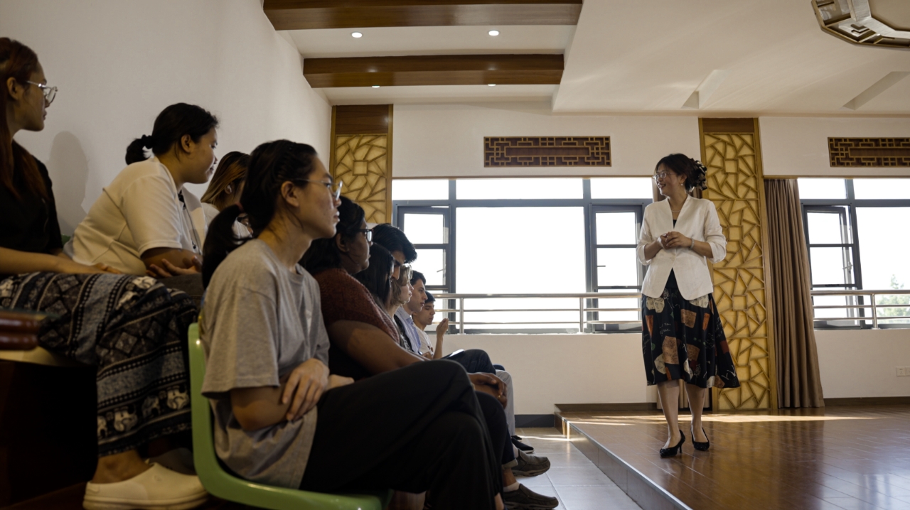 5月29日下午,太阳集团tyc539MACAU组织来华留学生开展中国和谐文化专题教学活动,邀请我校何芳、汪亭云、王庆庆老师为留学生讲解中国和谐文化要义,从书法、武术等方面展现自然和谐之美与身心和谐之道。