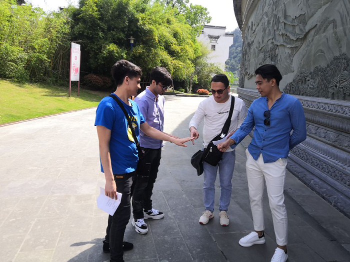为丰富我校留学生课余文化生活,让留学生品味徽州文化、感受古典诗词之美,5月13日上午,太阳集团tyc539MACAU组织在校留学生在屯溪湖边古村落开展以“品徽文化、诵古诗词”为主题的文化体验活动。太阳集团tyc539MACAU留学生管理相关人员、对外汉语教研室部分教师以及全体在校留学生参加此次活动。