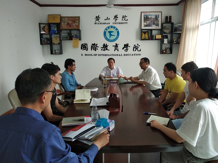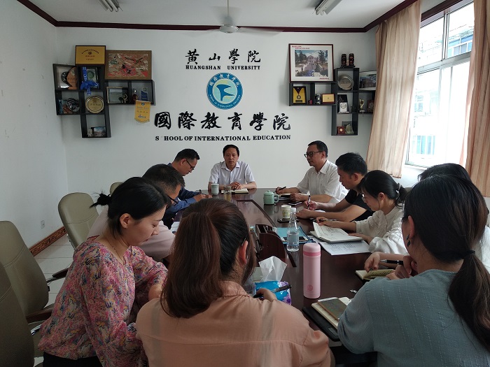 李铁范认真听取了汇报,认为学院领导班子坚强有力,全体教师非常团结,爱岗敬业,学院各项工作扎实推进、稳步发展。李铁范还对我院做好各项工作提出了具体指导意见:一要加强政策理论和业务知识的学习,提高能力素质和工作水平;二要一如既往的抓好疫情防控工作,重点抓好留学生、外教、我校国外师生的管理,确保安全;三要继续推动师生赴外交流和外教聘请工作,严格标准,规范流程,保证各项工作有序推进;四要积极做好留学生招生工作,并灵活采取措施妥善应对疫情影响;五要加强沟通,积极协调,大力开拓海外友好合作院校;六要严格教育教学管理,务实进行教育调研,扎实做好继续教育工作;七要与总务处等相关部门协调配合,做好徽风苑的升级改造,确保质量,如期完工。