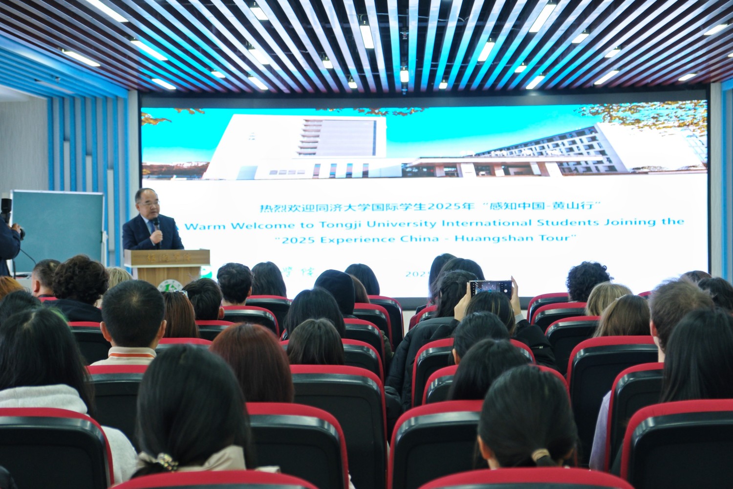 开班仪式上,张小明代表学校向同济大学代表团表示热烈欢迎,并系统介绍了学校的办学历史、办学特色及来华留学教育发展成果。他指出,此次活动为来华留学生深入了解中国、体验徽州文化提供了重要契机。同济大学留学生办公室副主任沈佳君在致辞中对黄山市政府及我校表示感谢,并期待通过此次研学进一步深化两校教育交流与合作。